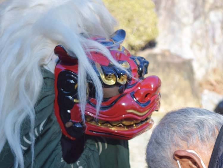 03/こちらも恒例の獅子舞です。獅子に頭を噛んでもらって邪気を食べてもらいましょう。