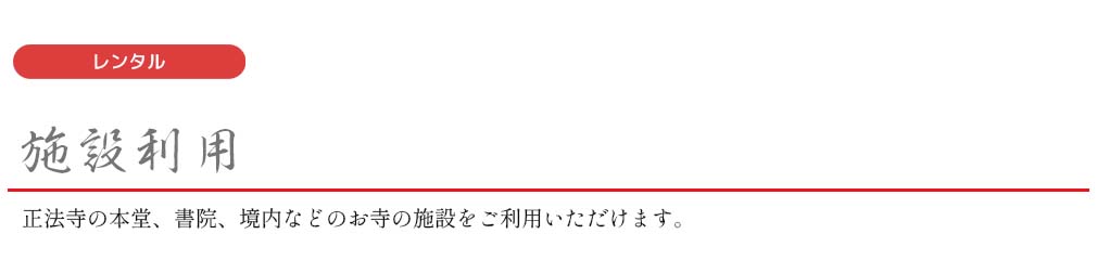 正法寺では、企業様、団体様、個人様などの皆様に施設をレンタルしております。